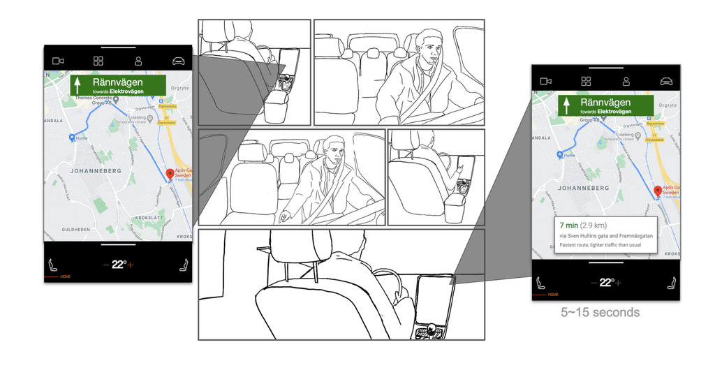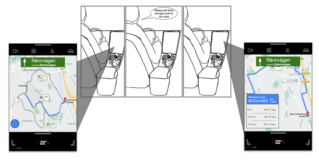 Our research explored existing academic and industry literature on multimodal interaction, sensor fusion, and automotive UX. We also conducted an in-depth analysis of leading infotainment systems, including Mercedes' MBUX, BMW's iDrive, Audi's MMI, Volkswagen's MIB, and the Android Automotive interface developed by Aptiv for Polestar and Volvo. This comprehensive review helped shape our understanding of current capabilities and informed our design approach.