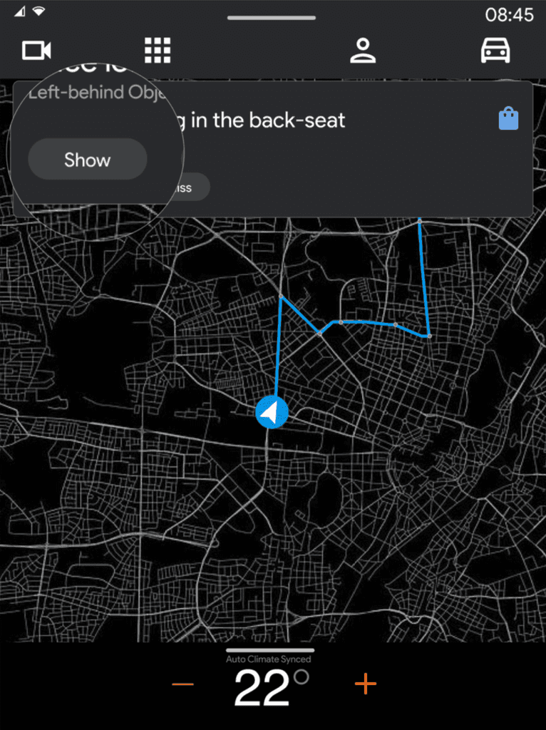 Sensors Used: In-cabin Gesture radar, Driver alertness cameras and Infotainment display.
